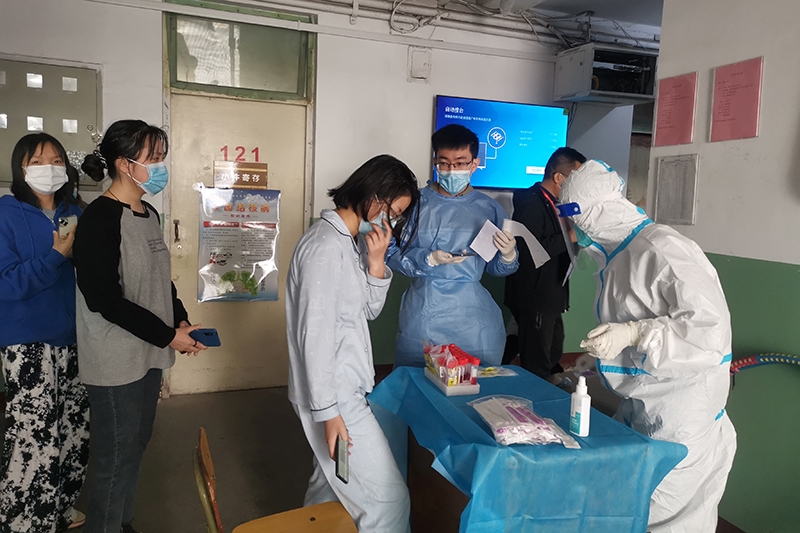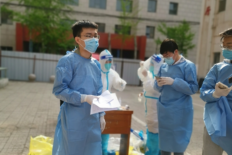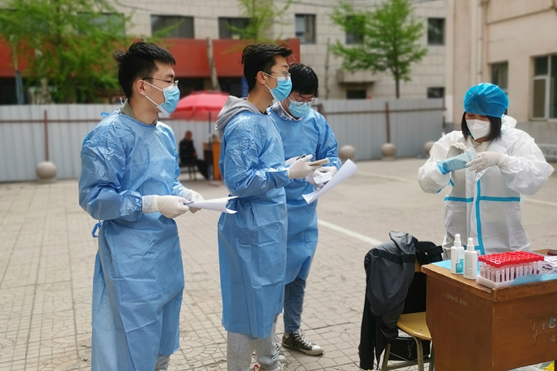 公司党小组积极响应太原校区临时党支部“戴党徽,亮身份,争做抗疫先锋”活动的号召,4月13日上午,公司党小组派出三名党员作为太原校区师生核酸检测志愿者。在四个小时维持秩序、引导保持间距、核酸信息采集扫码等志愿活动中,三名党员志愿者圆满完成了太原校区核酸采集工作。