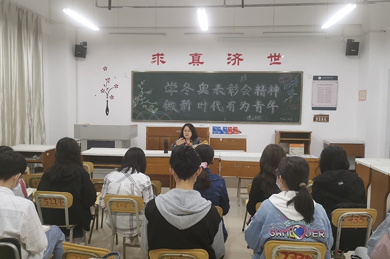 在太原校区党小组学习中,经理何丽清领学了习近平总书记在北京冬奥会、冬残奥会总结表彰大会上的重要讲话,并结合自身经历谈了感想。她强调,同学们一定要积极宣传冬奥文化,弘扬冬奥精神,接续奋斗。