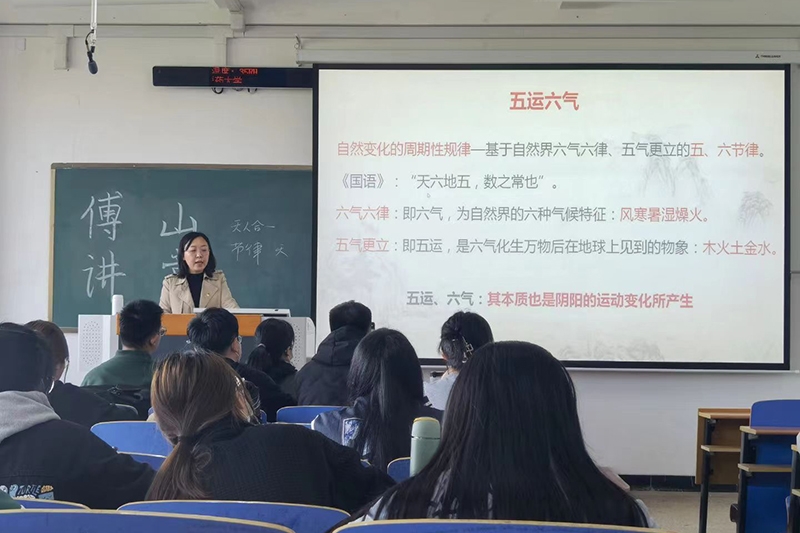讲座中,樊凯芳首先收集了同学们对五运六气的理解,并针对其中的问题向大家讲述了五运六气的重要性:不懂五运六气,便不能读懂《黄帝内经》。其次,对五运六气作出了解释:五运即五行,六气即六种自然气候。此外,她还对五运六气的推演进行了讲解,生动阐释了如何确定主运、客运与主气、客气。