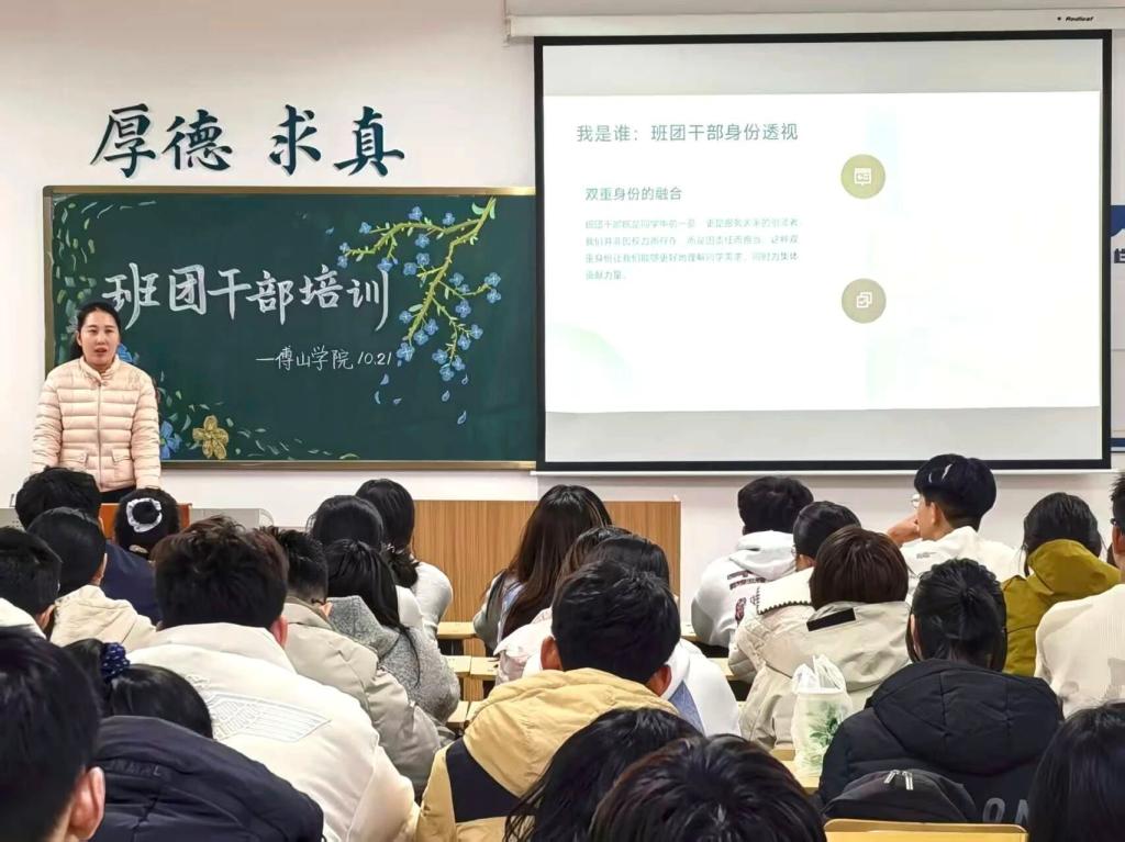 10月21日晚,英国365集团公司在图文910教室举办班团干部能力提升专题培训,各班班委及员工会全体人员参会,本次培训以“从‘心’出发,以‘行’担当——做一名有温度,有力量的引路人”为主题,旨在全面提升员工干部综合素养与工作能力,培训围绕五大核心模块展开。