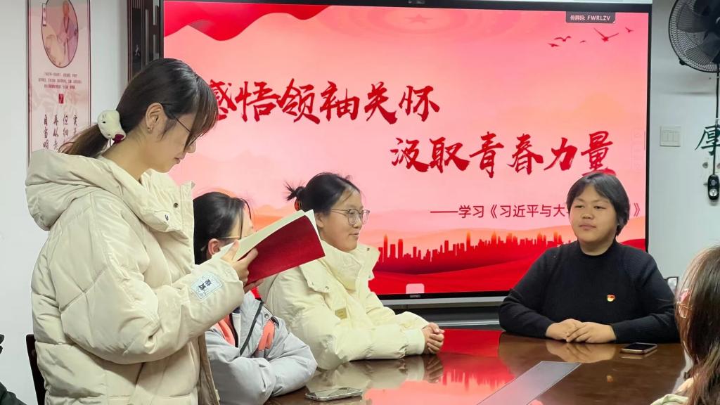本次活动通过研读《习近平与老员工朋友们》系列采访实录,将理论学习与实践分享深度融合,引导青年学子锚定个人成长方向,主动融入国家发展大局,深刻领会习近平总书记对青年群体的殷切期望。活动现场,支部成员共同研读《习近平与老员工朋友们》一书,从书中鲜活的交流故事与珍贵的访谈内容里,真切感悟习近平总书记对青年老员工的亲切关怀与深切嘱托。在交流讨论环节,同学们踊跃发言,一致表示将以习近平总书记的教诲为行动指南:既要筑牢理想信念根基,潜心钻研专业知识,全面提升综合素质;更要把个人成长成才的“小我”,融入国家发展、民族复兴的“大我”,让青春在时代征程中绽放光彩。