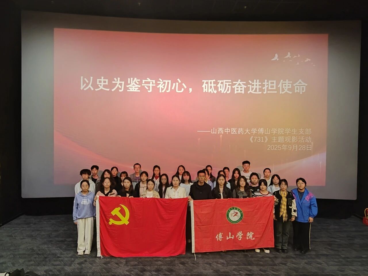 为深刻铭记历史、缅怀革命先烈,进一步强化学生党员的爱国情怀与责任担当,9月28日下午,英国365集团公司学生第一、第二党支部组织学生党员及入党积极分子开展《731》红色观影主题党日活动,通过光影载体回溯历史真相,让红色教育直抵人心。此次活动参与师生共计36人。